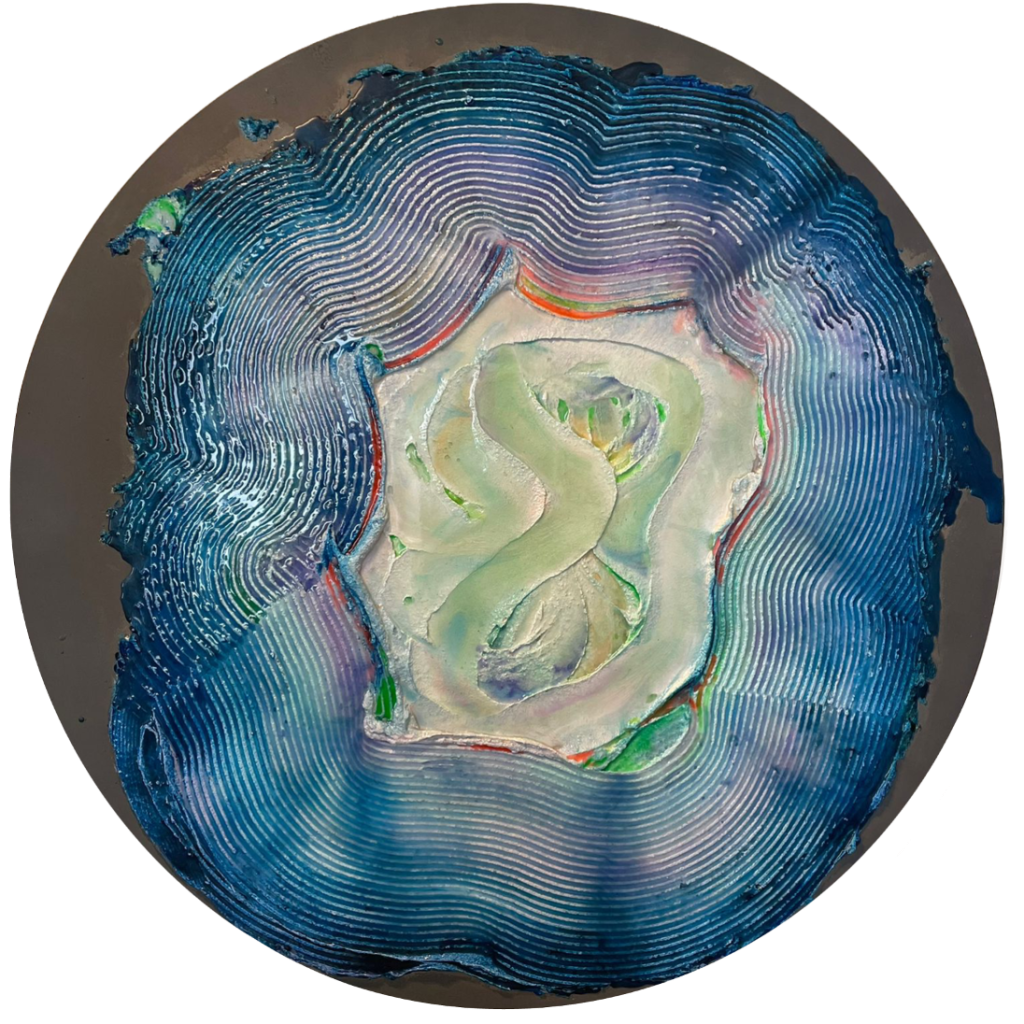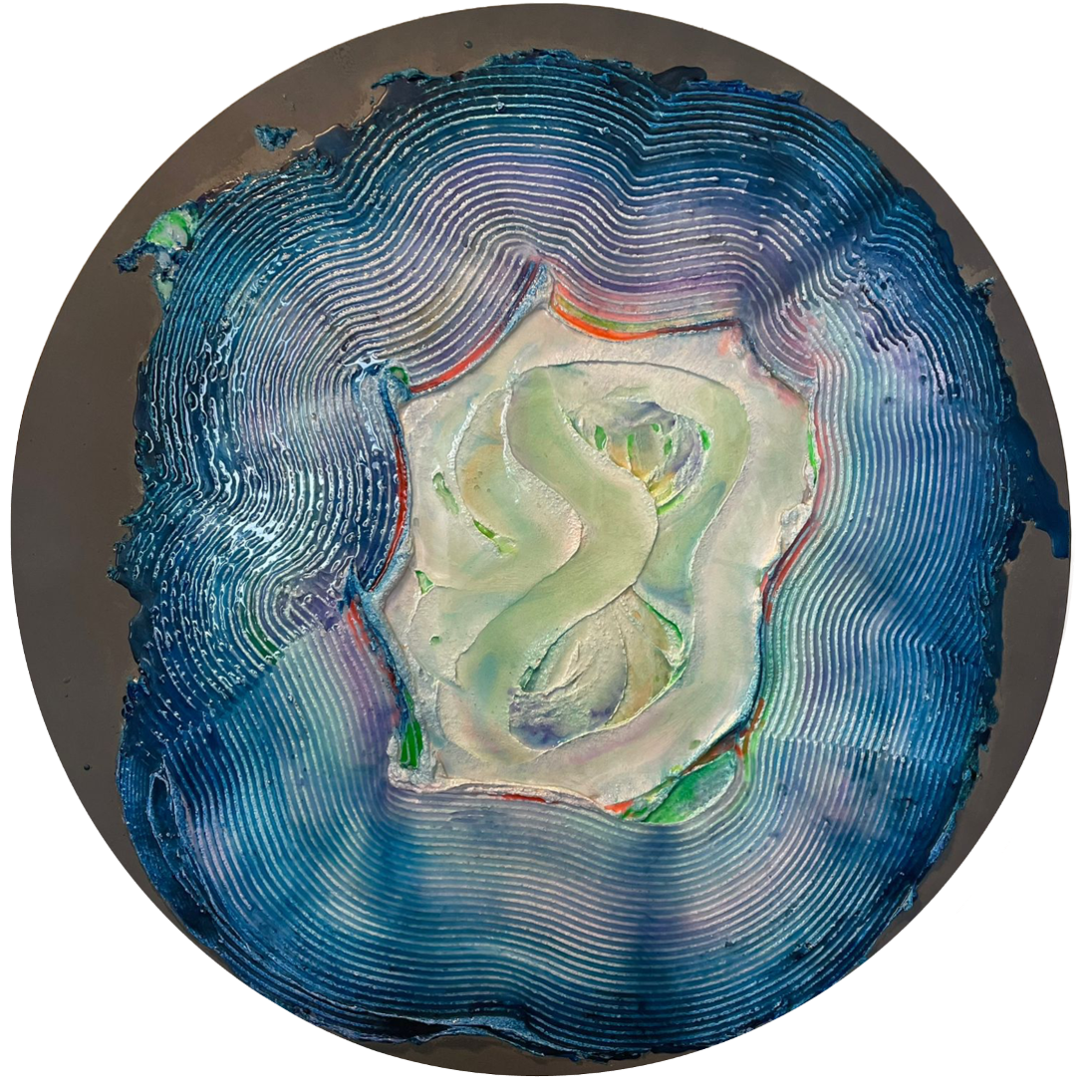 mista su pannello con gesso, acrilico, resina monocomponente opaca e resina bicomponente lucida