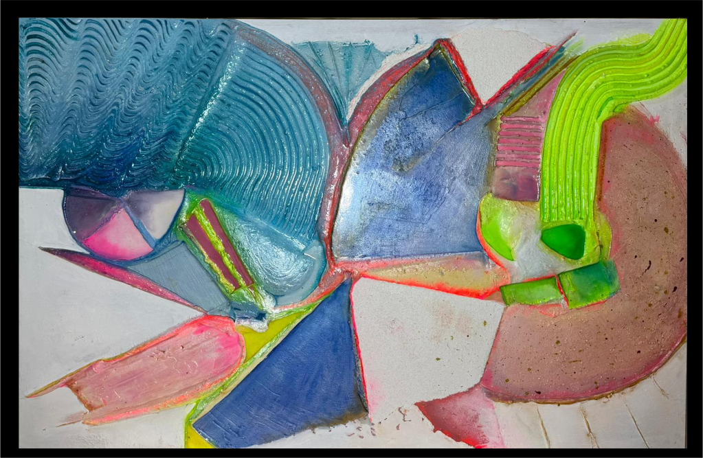 mista su pannello con gesso, acrilico, resina monocomponente opaca e resina bicomponente lucida