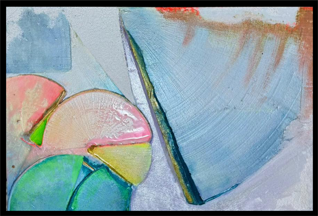 mista su pannello con gesso, acrilico, resina monocomponente opaca e resina bicomponente lucida