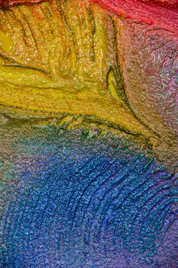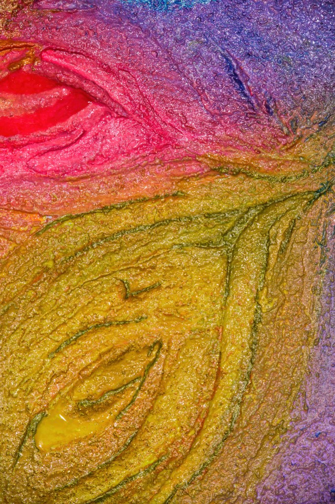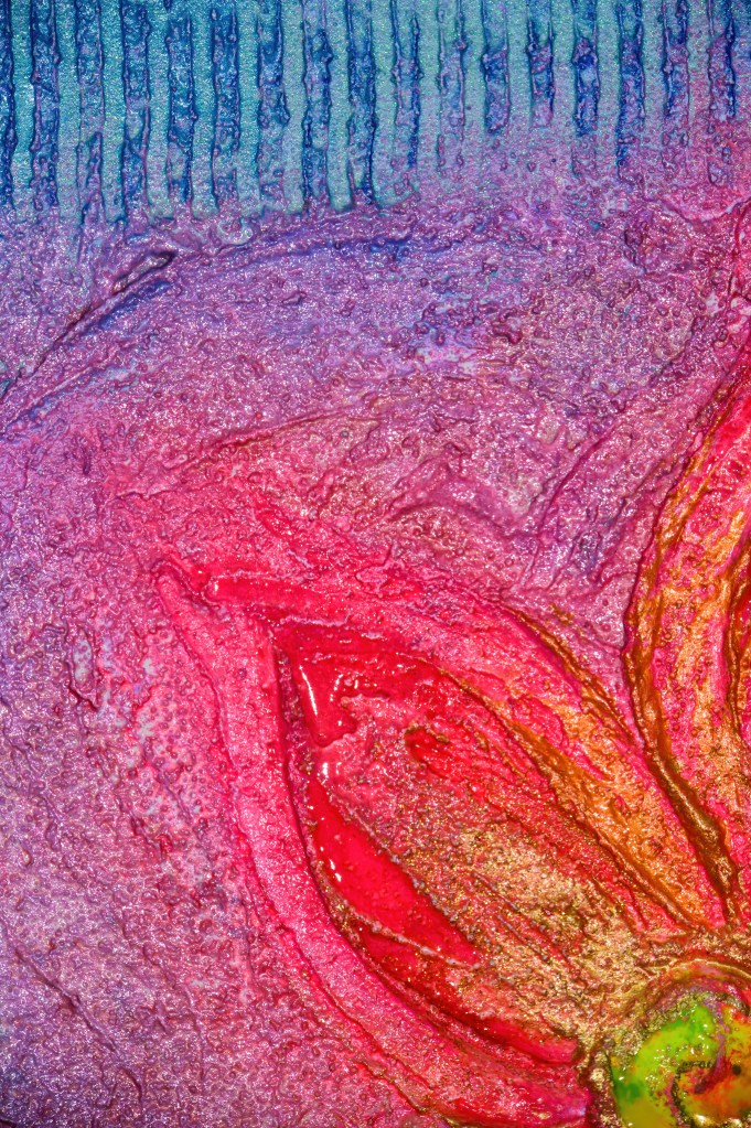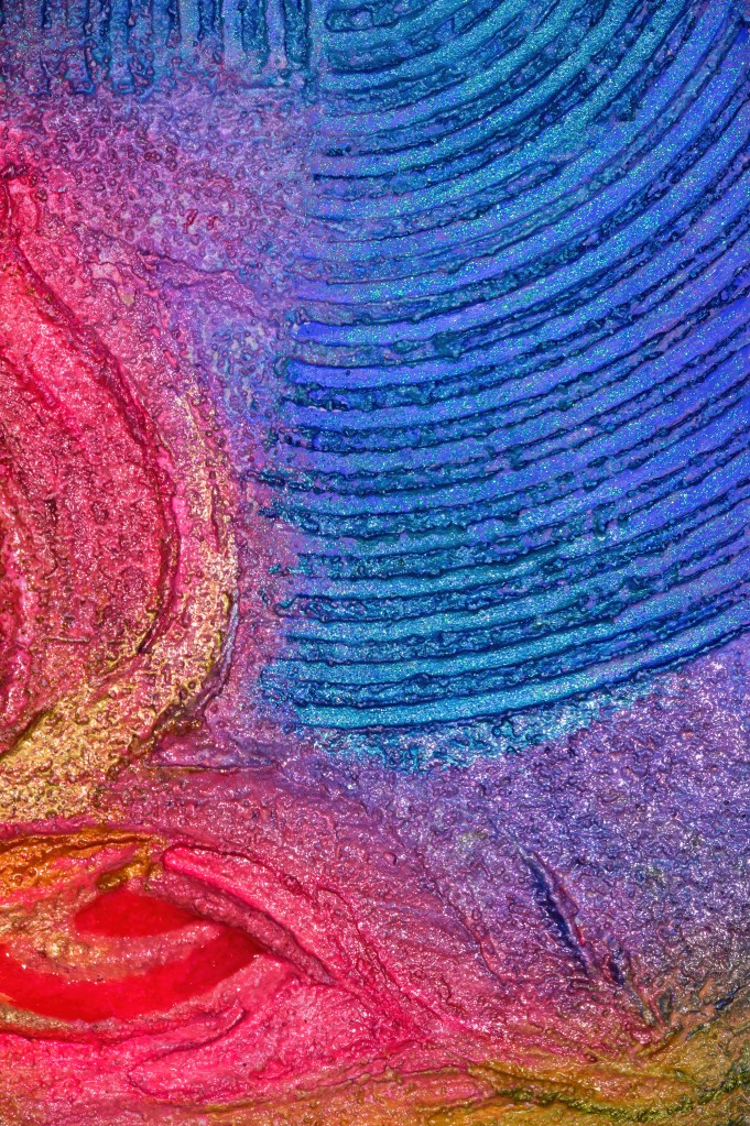 Ma al di là della radiosità, emerge un richiamo intimo: graffiature sinuose di azzurro intenso evocano il mare, l’eco viscerale di “ciò che manca”. Qui la leggerezza si fonde con la tenera malinconia. Un istante eterno dove la luce più splendente e l’immensità interiore si abbracciano, rivelando un’emozione pura.