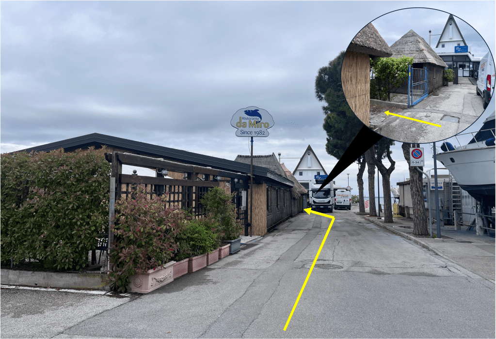 Ma qui sotto ti indico (grazie anche allo zoom) come arrivarci a piedi, dopo aver parcheggiato