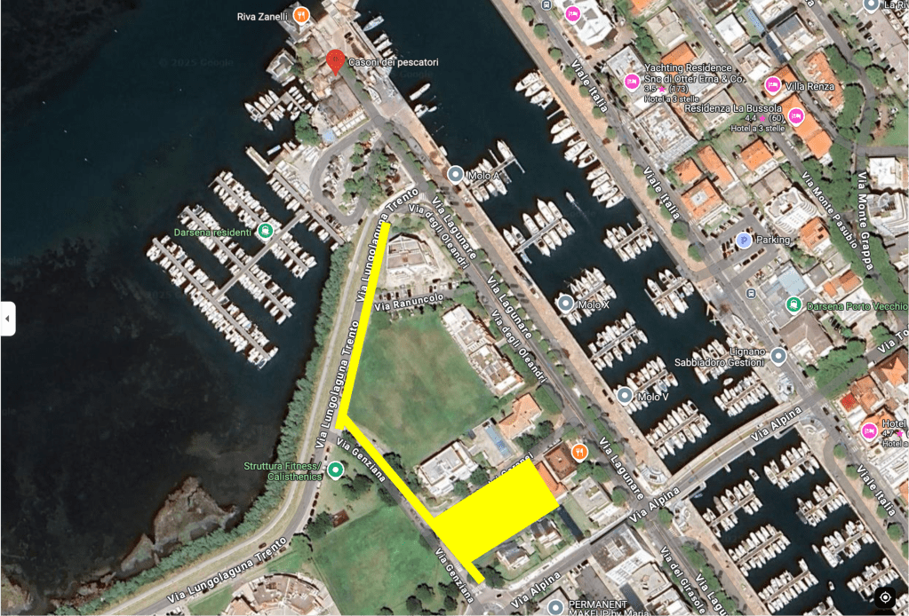 in particolare il rettangolo giallo (parcheggio in via dei Geranei,