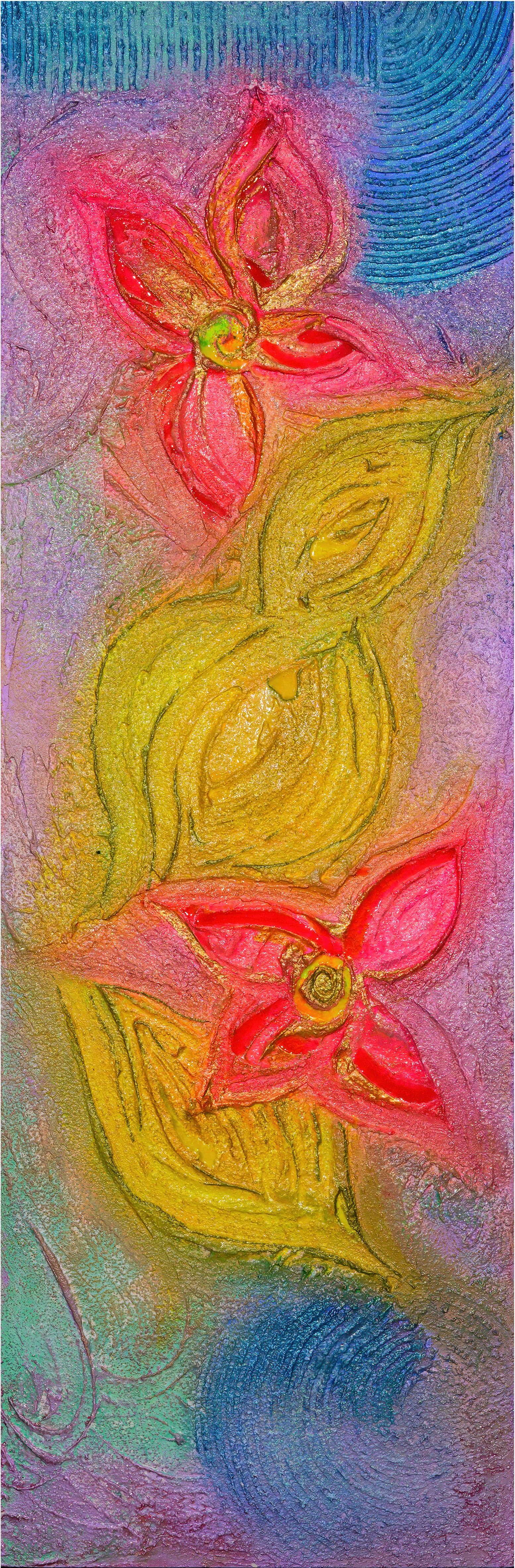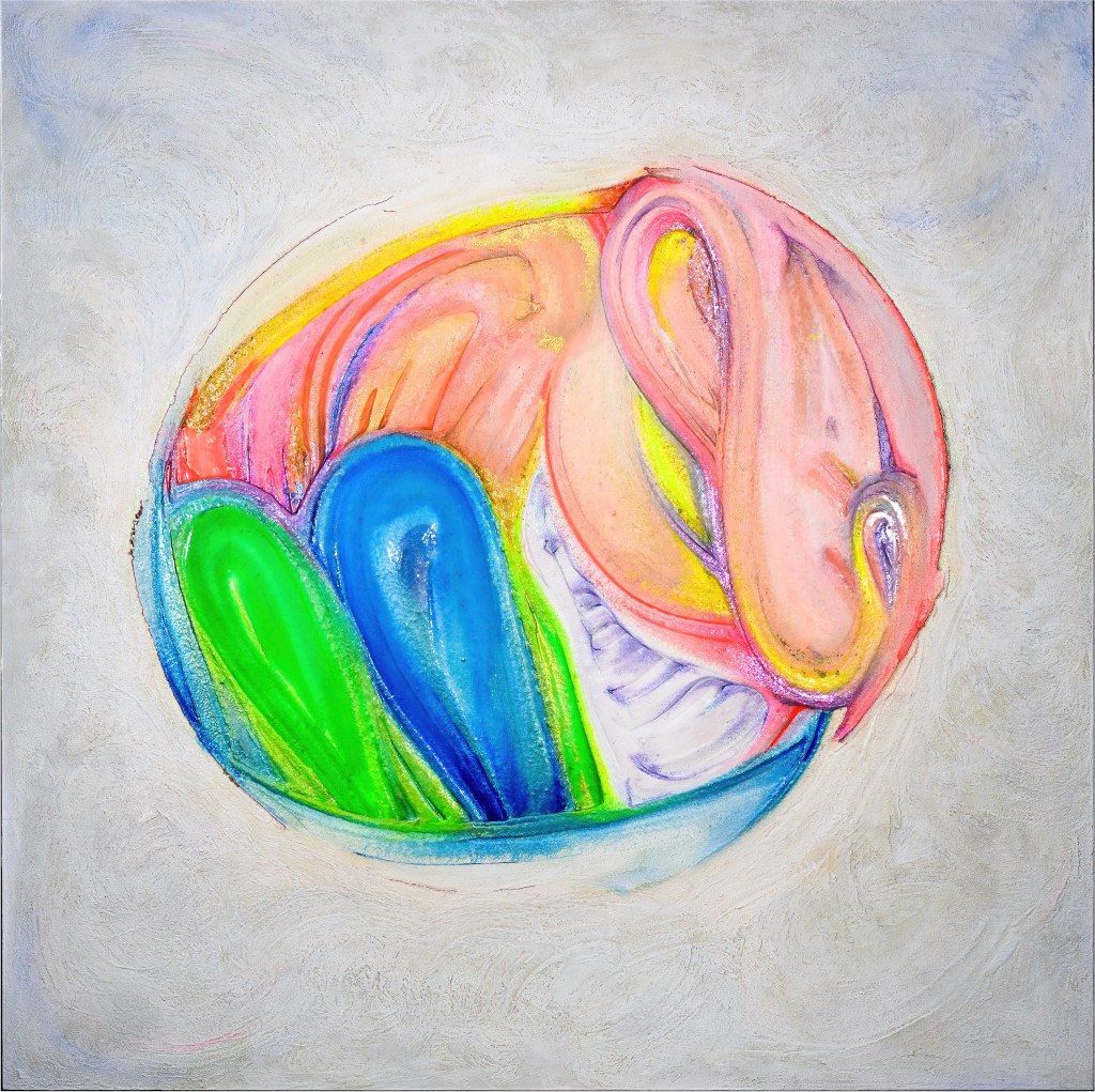 Questo quadro è il segno tangibile di quella lotta e di quella vittoria. Ogni colore delicato che si espande sulla tela è una lacrima asciugata, una cicatrice trasformata in fioritura. Ogni sfumatura è un passo incerto verso un’alba ritrovata, un atto di fede nella promessa di una luce che non si spegne mai del tutto. In questo spazio di ritrovata serenità, l’eco del dolore si trasforma in melodia, la fragilità in una forza inaspettata. Questo quadro è la testimonianza di una rinascita, la consapevolezza che anche nel momento più buio, un’immensa bellezza attende solo di essere liberata, nutrita dal coraggio di desiderare ancora.”