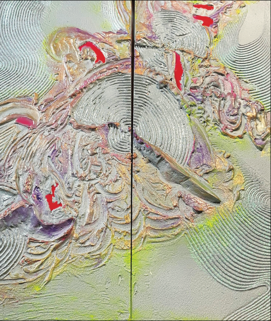 “Tutto è relativo”: bellezza e significato vibrano nell’occhio di chi guarda, nel cuore che sente. Colori intensi sono emozioni, la materia eco di energia inesauribile. Questo quadro è da sentire, un invito a lasciarsi trasportare dal flusso delle interpretazioni, riconoscendo la magia della trasformazione, la capacità di vedere molteplici realtà in una. Un inno alla meraviglia di un universo interconnesso, dove ogni percezione è un’emozione unica.