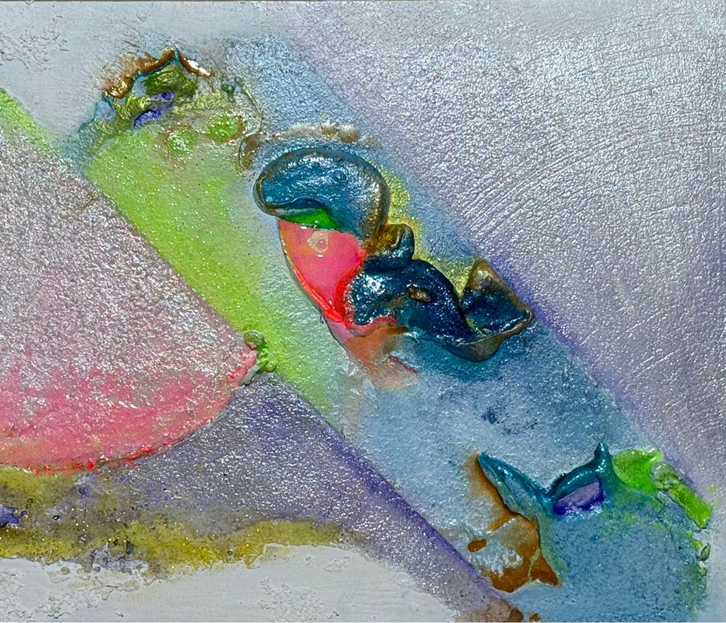In queste opere, il colore acceso e fluo non è decorazione ma presenza viva, frequenza emotiva, energia che attraversa lo sguardo e lo trasforma.
