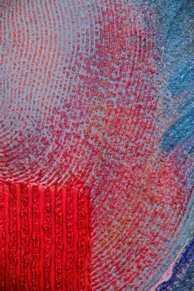 Così è nato questo primo quadro. Una “carta rossa” vibrante, quasi un cuore pulsante lasciato alle spalle, da cui germina inattesa una libertà alata. Un’ala che respira nuova aria, che nel suo slancio ricorda la fluidità di un delfino che si immerge in un oceano di possibilità. Questo non è un addio malinconico, ma un “muovi le ali, sei libera” sussurrato a me stessa.